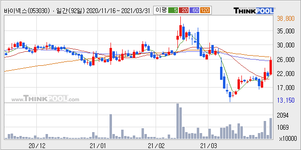 바이넥스 : 기관 외인 매수 외 특이사항 없어 보임