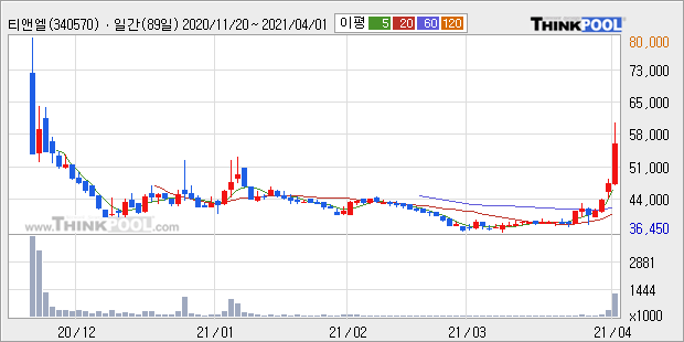 티앤엘 : 기관 외인 매수 외 특이사항 없어 보임