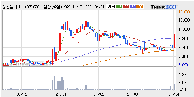 신성델타테크 : LG화학 분사 수혜 기대감 지속 추정