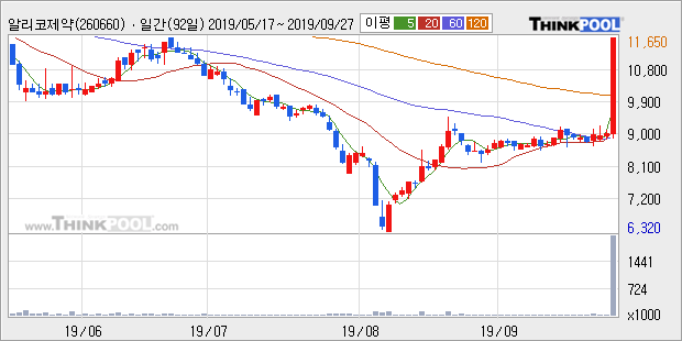 알리코제약 : 코로나19에 구충제가 치료효과가 있다는 소문에 급등 추정
