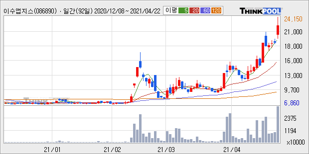 이수앱지스 : 문 대통령 러시아 백신 스푸트니크V 도입 검토 지시 이슈에 강세