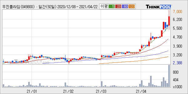 우진플라임 : 무상증자 모멘텀 지속 추정