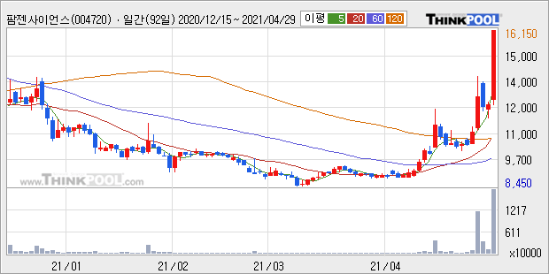 팜젠사이언스 : 엑세스바이오 1분기 역대급 실적 이슈에 강세.