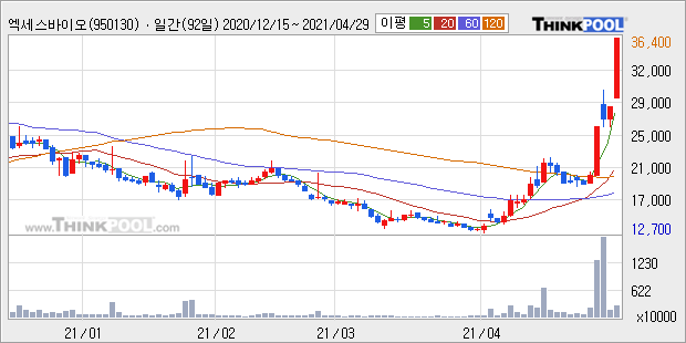 엑세스바이오 : 1분기 역대급 실적 소식에 강세.