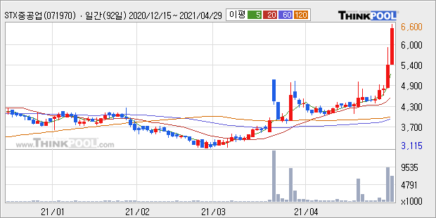 STX중공업 : 해운업 강세 편승 추정.