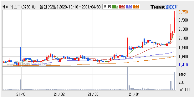 케이에스피 : 조선업 수주 호황 소식에 조선 기자재 업종 강세.