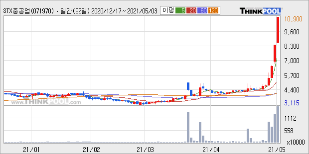 STX : 조선업종 수주 호황 소식에 관련 기자재 업종 강세