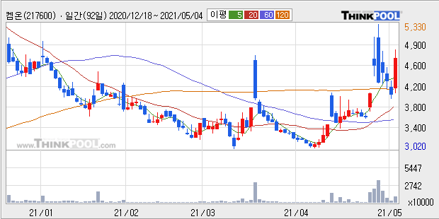 켐온 : 정부의 노바백스 코로나 백신 도입 추진 이슈에 강세.