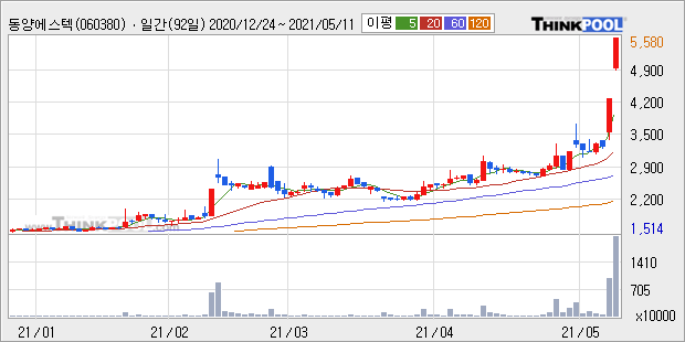 동양에스텍 : 국제 철강가격 고공행진 이슈에 관련 업종 강세 지속.