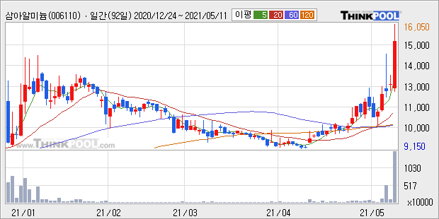 삼아알미늄 : 국제 알루미늄 가격 상승 이슈에 강세.