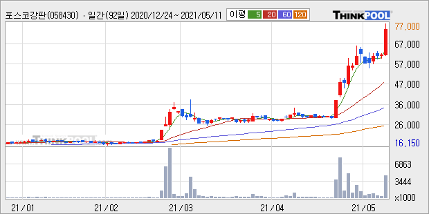 포스코강판 : 철강가격 고공행진 이슈에 관련 업종 강세 지속.