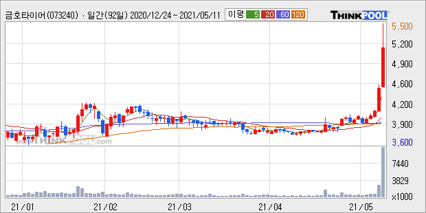 금호타이어 : 공장 이전에 대한 불확실성 해소와 신제품 출시에 따른 기대감 추정.