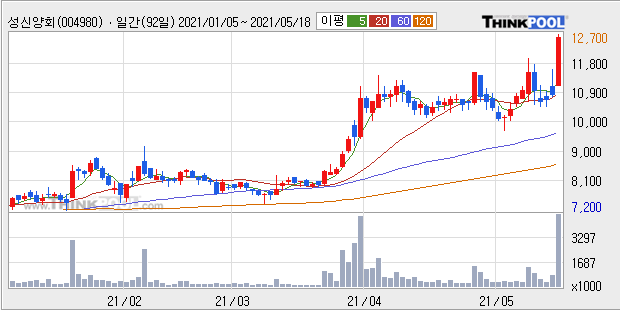 성신양회 : 시멘트 대란 가능성에 강세 추정.