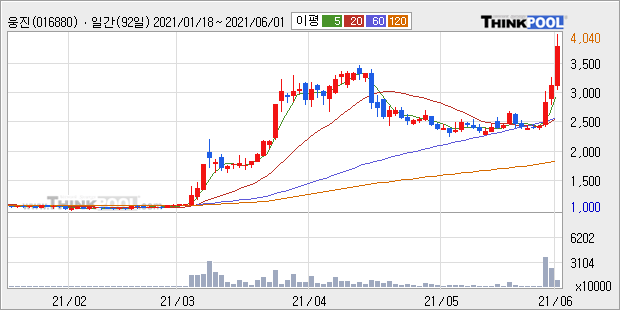 웅진 : 윤석열 테마주로 강세.