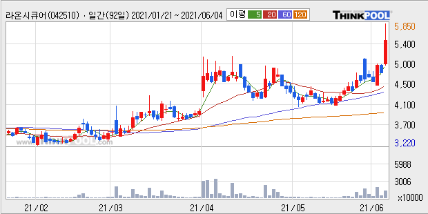 라온시큐어 : 백신여권 도입 이슈에 강세 추정.