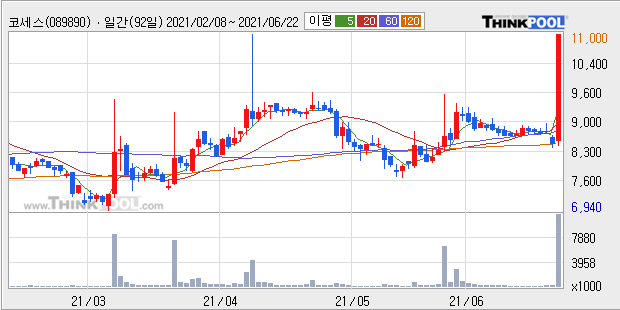 코세스 : 메타버스 관련주로 부각 강세 추정.