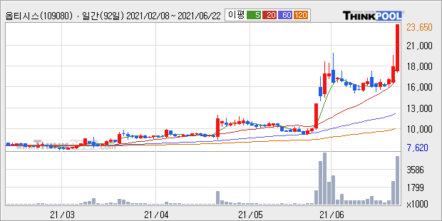 옵티시스 : 메타버스 관련주로 부각 강세 추정.