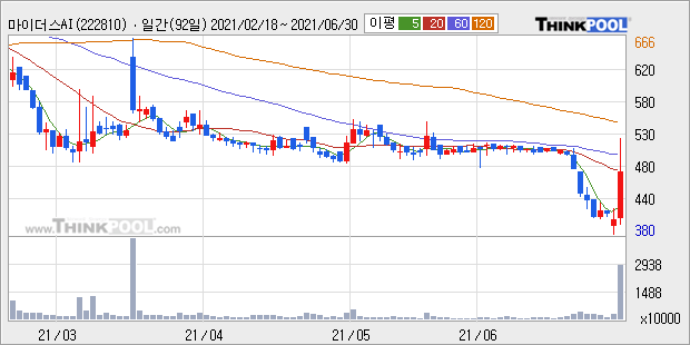 마이더스AI : 단기 낙폭 과대 및 마리화나 시장 성장 가능성에 강세 추정.