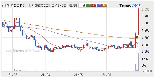 범양건영 : 일각에서 기본주택 정책 테마주로 주장.