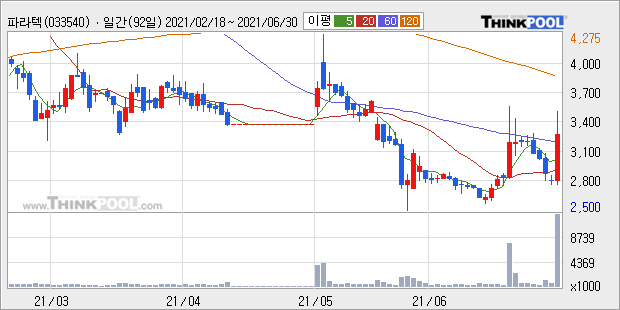 파라텍 : 일각에서 이재명 테마주로 주장 외 특이사항 없어 보임.