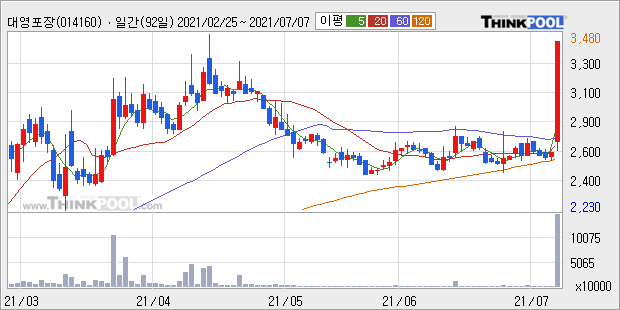 대영포장 : 코로나 확진자 급증 소식에 테이크아웃 포장지 업종 강세.