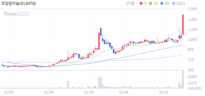 조일알미늄 : 2차 전지 및 친환경 전기차 관련 신규시설 투자 소식에 강세.