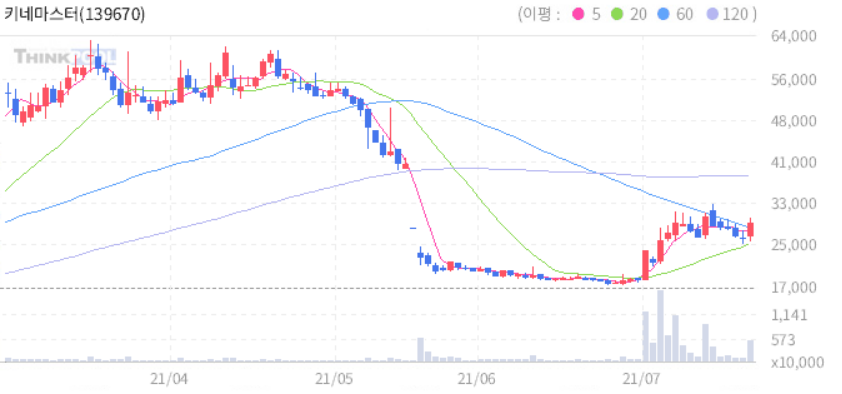 키네마스터 : 최대주주 지분 매각 모멘텀에 강세 지속.
