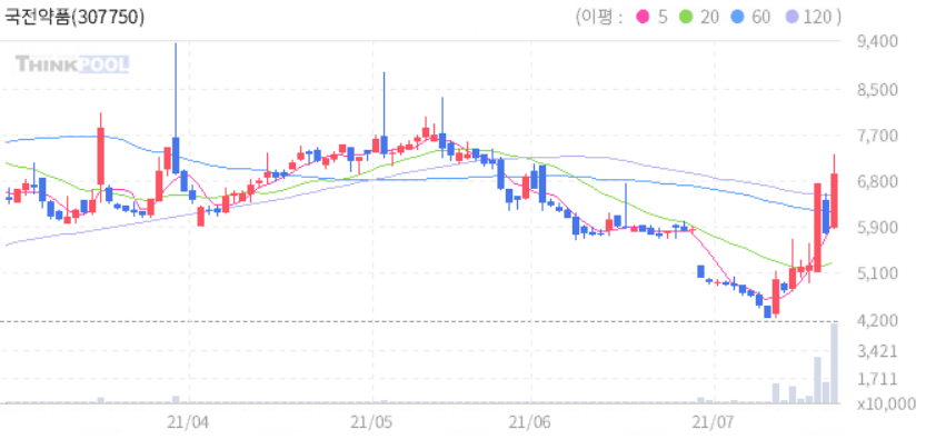 국전약품 : 코로나19 치료제 유럽 임상 2 상서 유효성 확인했다는 소식에 강세.
