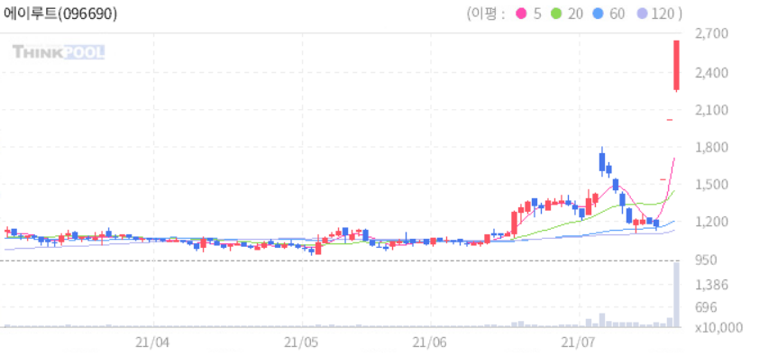 | 2021. 07. 20 상한가 종목 분석 (에이루트, 코리아에셋투자증권, 알체라 등등) (0) | 2021.07.20 |