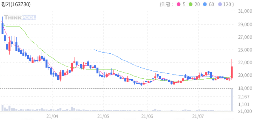 핑거 : 메타버스 관련주로 부각 추정.