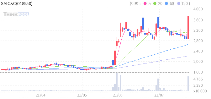 SM C&C : 이수만 지분 카카오 인수설 재부각으로 강세.