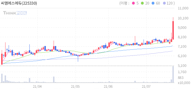 씨엠에스에듀 : 세계적 3D 엔진 개발사 유니티와 파트너십 사실에 메타버스 관련주로 부각.