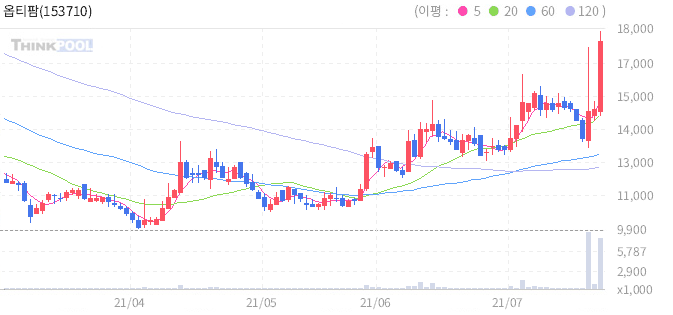옵티팜 : 협업 회사 큐라티스 mRNA 백신 국내 임상 승인 소식에 강세.