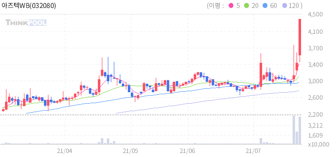 아즈텍WB : 지분투자사 큐라티스 mRNA 백신 국내 임상 승인 소식에 강세 지속.