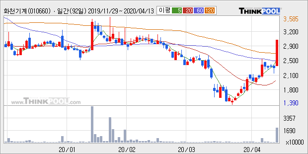 화천기계 : 총선 여당 우세설에 조국 관련주 강세 추정
