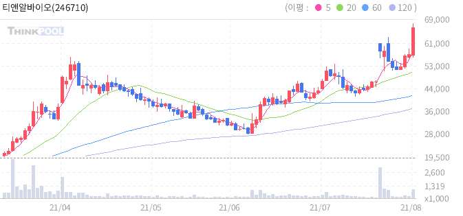 티앤알바이오팹 : 기관 외인 매수 및 인공간 동물 이식 성공 모멘텀 지속 추정.