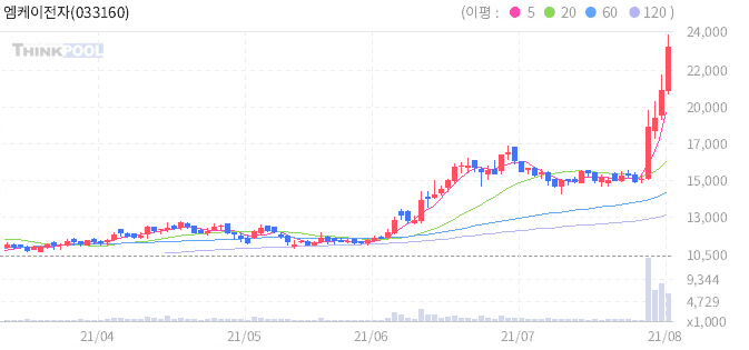 엠케이전자 : 삼성SDI, 실리콘 음극재 신규 조달처 후보 이슈에 강세 지속.