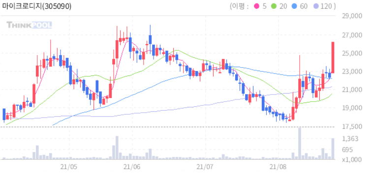 마이크로디지탈 : 삼성바이오 분야 필수 원부자재 국산화 수혜 기대감 추정.