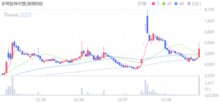 오하임아이앤티 : 코로나 확산으로 인해 온라인 가구 구입 증가 기대감 추정.