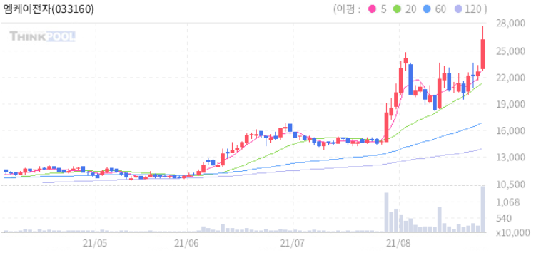 엠케이전자 : 경기도 "소부장 산업 지원 자립화 가시화되고 있다"는 소식에 강세 추정.