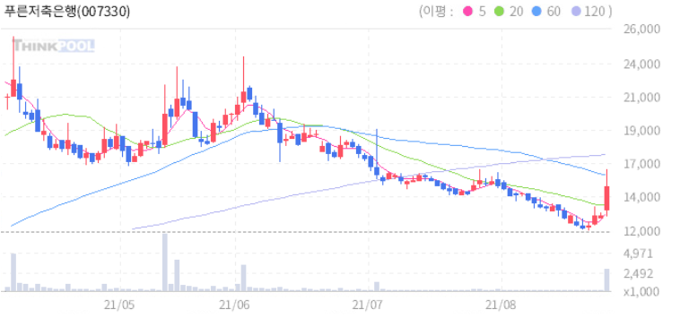 푸른저축은행 : 한은 기준금리 인상 소식에 금융업종 강세 추정.