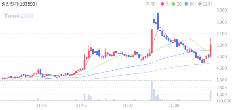 일진전기 : 일진홀딩스 강세 편승 추정.