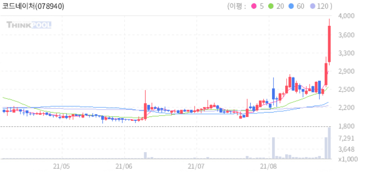 상한가 분석 (코드네이처, 평화산업, 에이루트, 젬백스지오 등등)