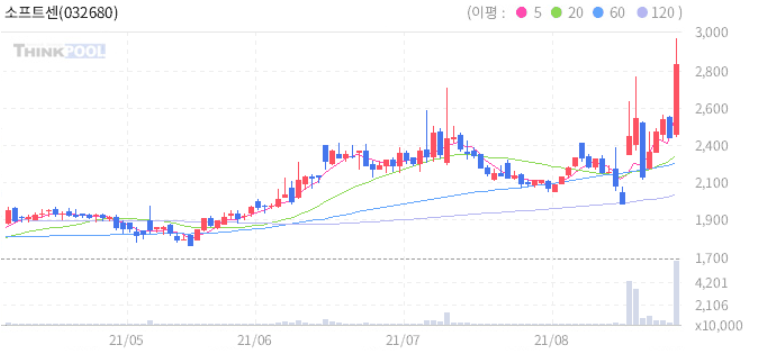 소프트센 : 폴더블폰 대중화 수혜 기대감 추정.
