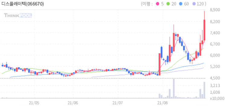 디스플레이텍 : 지분 보유중인 한국 충전 현대차에 피인수 기대감 지속.
