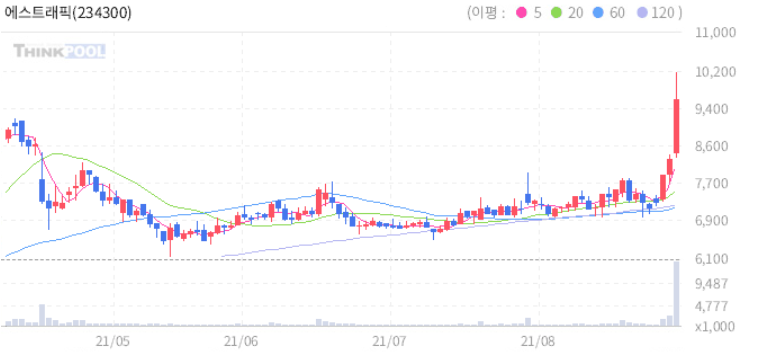 에스트래픽 : 전기차 충전기 설치 시장이 커질 것이라는 전망에 강세 추정.