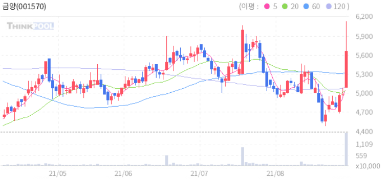 금양 : 2차 전지 소재, 수소연료 전지 사업을 통해 매출 다변화 기대감 추정.