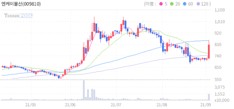 엔케이물산 : 원료 슬러지 소각 물질에서 원료로 재활용 가능한 성분을 추출하는 기술을 개발 소식에 수혜 기대 추정.