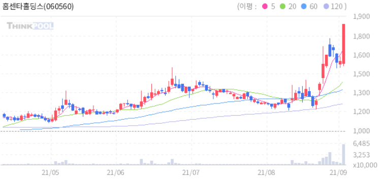 홈센타홀딩스 : 홍준표 테마주로 강세 추정.