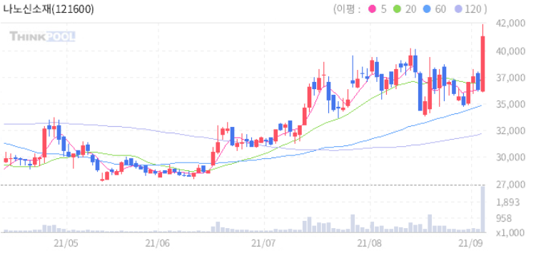 나노신소재 : LG그룹이 애플 카 TF 참여한다는 소식에 수혜 기대감 추정.